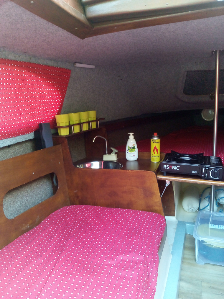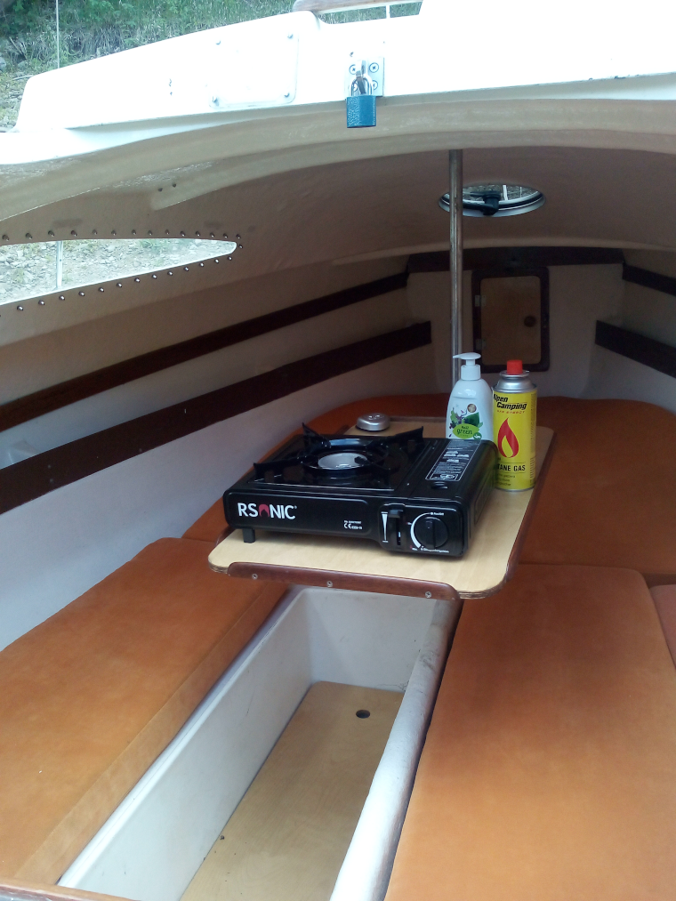 * Na lodi je vařič s plynovou náplní, používání na lodi je zakázáno. Vařič můžete používat pouze mimo plavidlo na břehu.