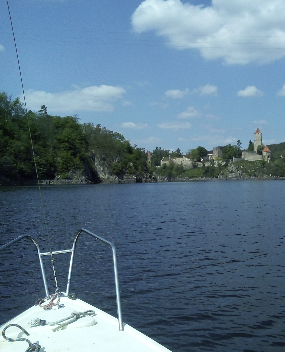 za 1,5 km připlujete ke gotickému hradu Zvíkov. Zároveň se ocitnete